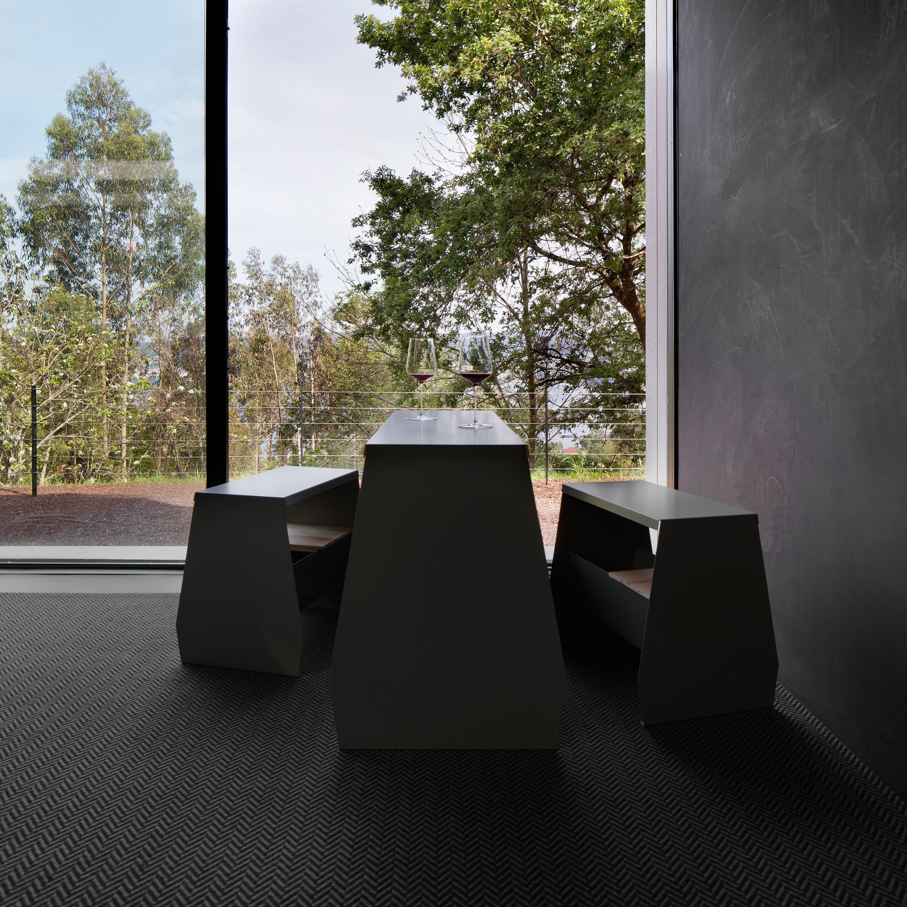 Cada peza está pensada para resolver varias funcións, o que proporciona ao espazo unha maior flexibilidade e axilidade na súa configuración, así como unha maior optimización do espazo ocupado. De aparencia contida e sobria, as pezas toman referencias formais en solucións de mobiliario primixenias, ausentes de ornamento e de pretensión algunha.