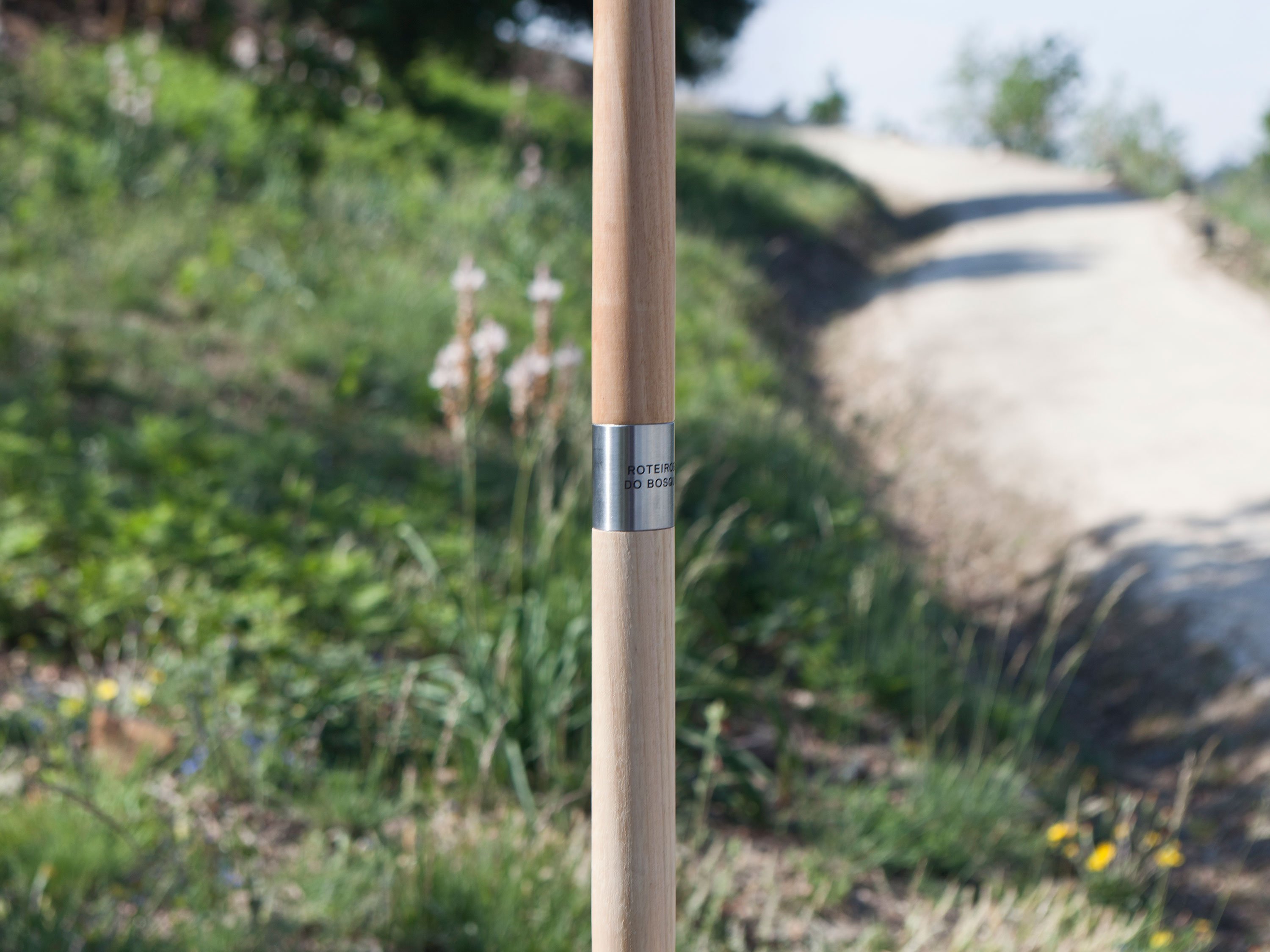 Para mellorar a interpretación das pezas, así coma para sinalizar os itinerarios dentro da rede de camiños, resultaba necesario dispoñer dun sistema de sinalización. A solución debía ser flexible, cómoda nas labores de montaxe e transporte e, sobre todo, pouco invasiva e coherente co entorno no que ía estar instalada.
